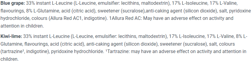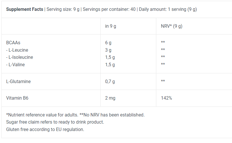 • כ- 7 גרם של חומצות אמינו טהורות, מתוכם 6 גרם BCAA