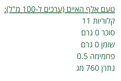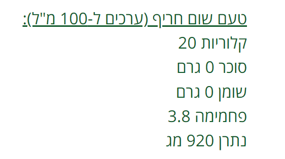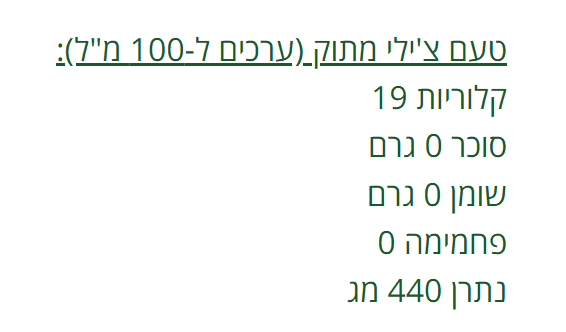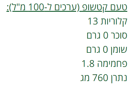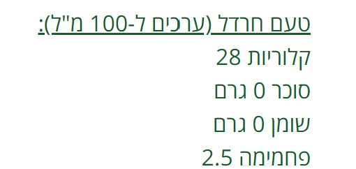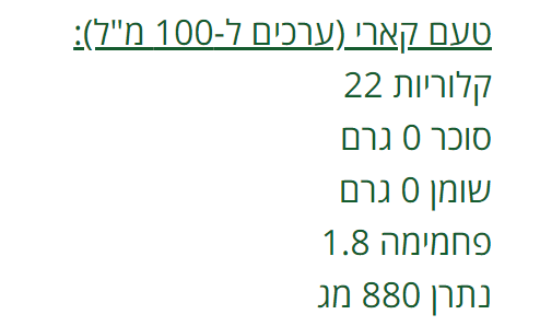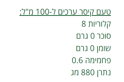 • 11-40 קק"ל ב-100 מ"ל (תלוי בטעם).