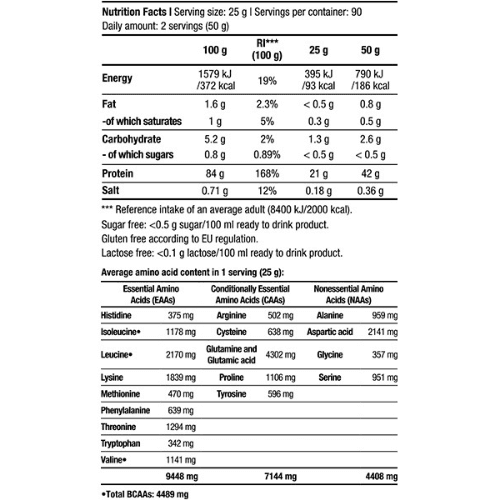 בשל העובדה שחלבון מי גבינה מבודד מכיל 0 גרם לקטוז (סוכר חלב) וכמעט נטול שומן (0.4 גרם), הוא מומר לחומצות אמינו על ידי המעי הדק מהר יותר, ומאפשר לכם לקבל את כל אבות המזון ביעילות.