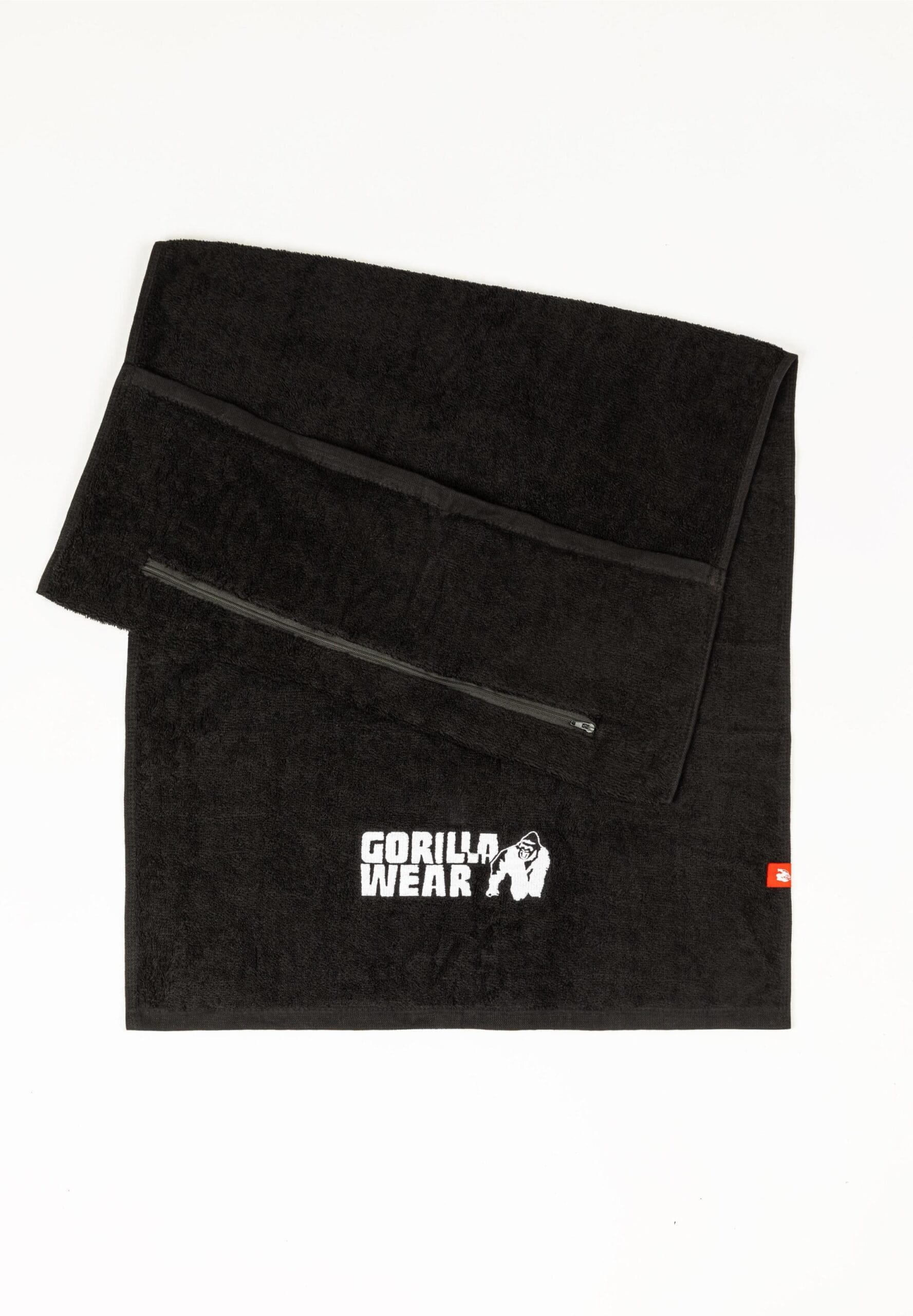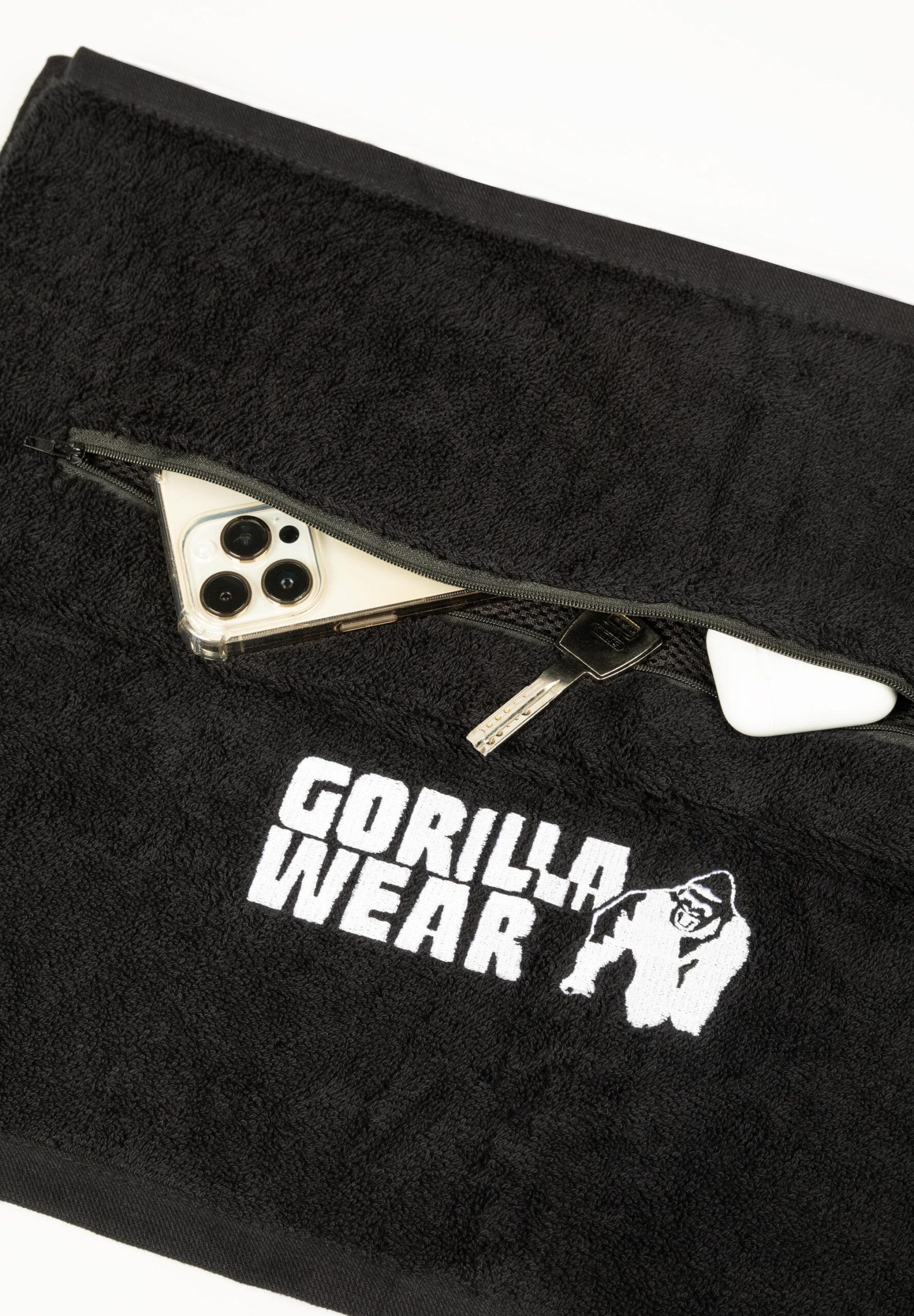 Gorilla Wear | מגבת Zip Pocket לאימון – כיס עם רוכסן בצבע שחור