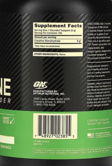 Optimum Nutrition מייצרת קריאטין מיקרוניז – חלקיקים קטנים שמתמוססים בקלות ונספגים מהר יותר. המוצר עבר מבחנים מחמירים ומאושר על ידי Informed Sport – תכנית בדיקות עצמאית שמוודאת שהמוצר נקי ממרכיבים אסורים. זה חשוב במיוחד לספורטאים מתחרים.