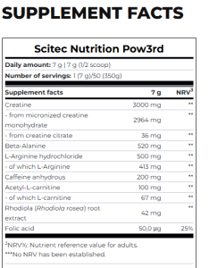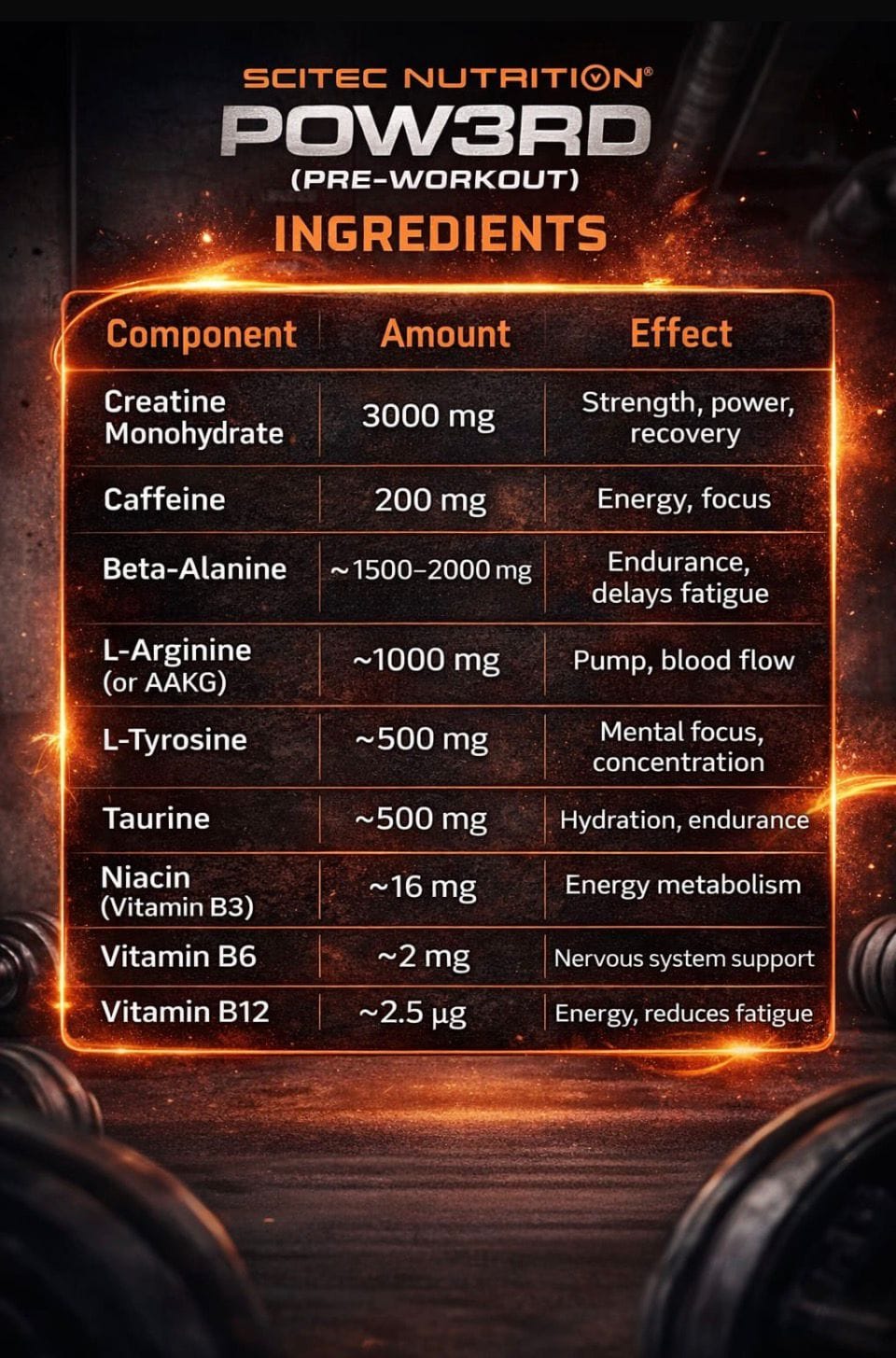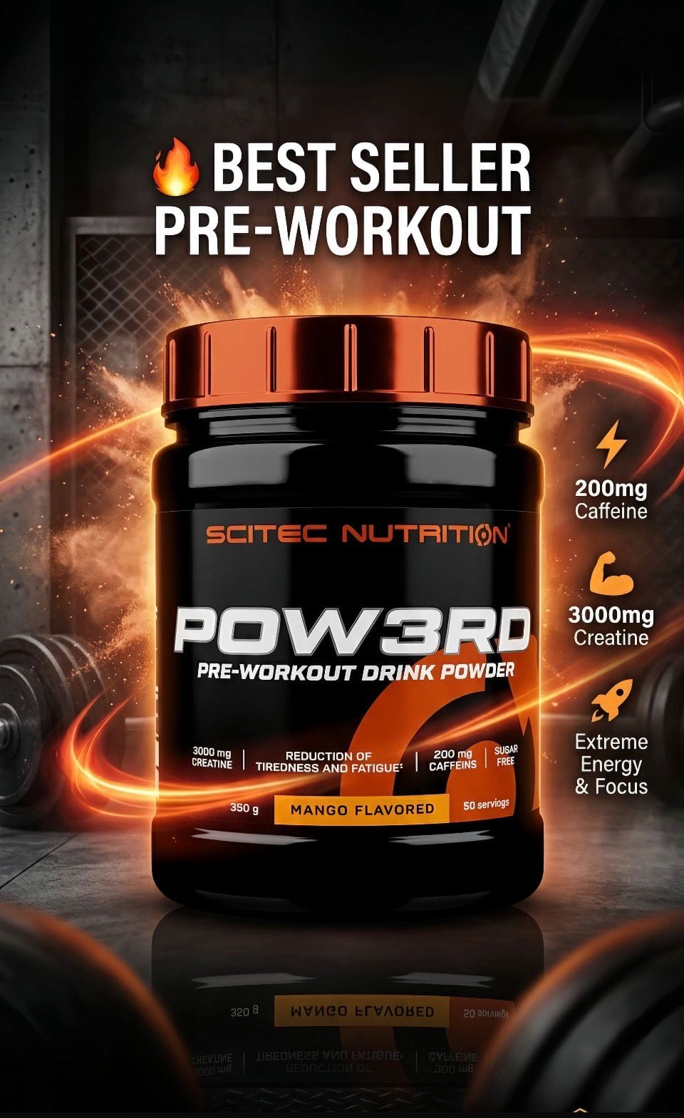 Pow3rd!  של Scitec Nutrition הוא תוסף קדם-אימון מתקדם שנועד להעניק לך בוסט של אנרגיה, פוקוס וכוח לפני כל אימון. הפורמולה משלבת קפאין, קריאטין, בטא-אלנין ורכיבים נוספים לשיפור ביצועים, סיבולת וריכוז – כך שתוכל להפיק יותר מכל סט.
