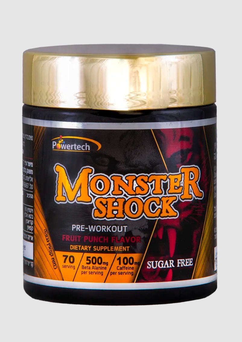 MONSTER SHOCK של חברת Power-Tech היינו תוסף קדם אימון שנותן לגוף תחושת אנרגיה, כוח ופוקוס וחדות באימון כמו שלא הכרתם בעבר.